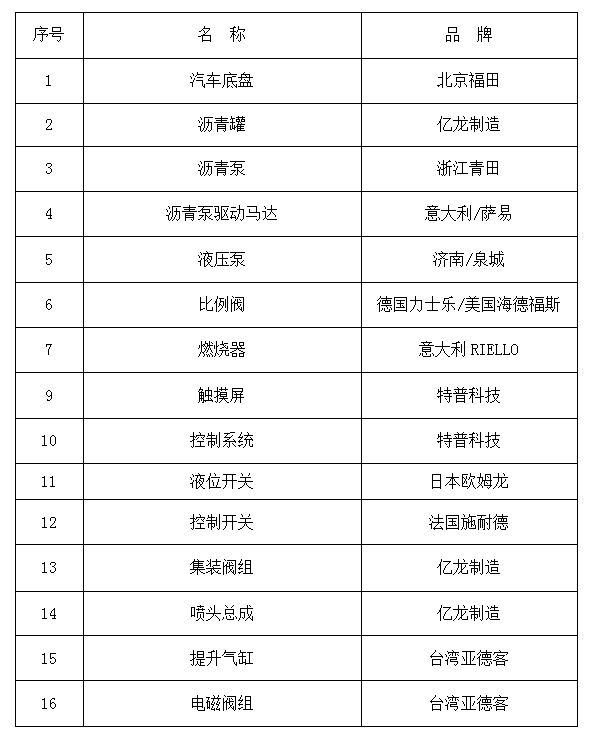 3、YLLS0945(國Ⅵ 標(biāo)配型)全自動瀝青灑布車主要元器件配置
