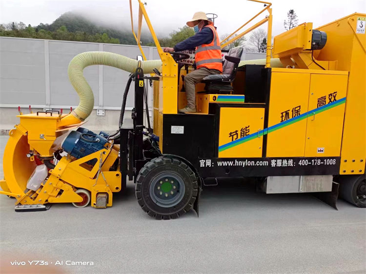 駕駛式路面拋丸機(jī)通過機(jī)械的方法把丸料(鋼丸或砂粒)以很高的速度和一定的角度拋射到工作表面上,讓丸料沖擊工作表面,以達(dá)到被拋射的表面粗化并去除殘留物的效果,與此同時(shí)除塵器產(chǎn)生的負(fù)壓會將丸料和清理下來的雜質(zhì)粉塵等回收經(jīng)過氣流清洗后,完好的丸料會自動循環(huán)使用,而雜質(zhì)和粉塵也會落入灰斗中